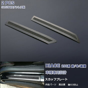 【クーポン配布中】ハイエース 200系 前/中/後期 サイドスカッフプレート フェンダーモール ステップガード ドレスアップ ステンレス製 カーボン調 食刻加工 内装 カスタムパーツ アクセサリー 2PCS 3853 HIACE特集